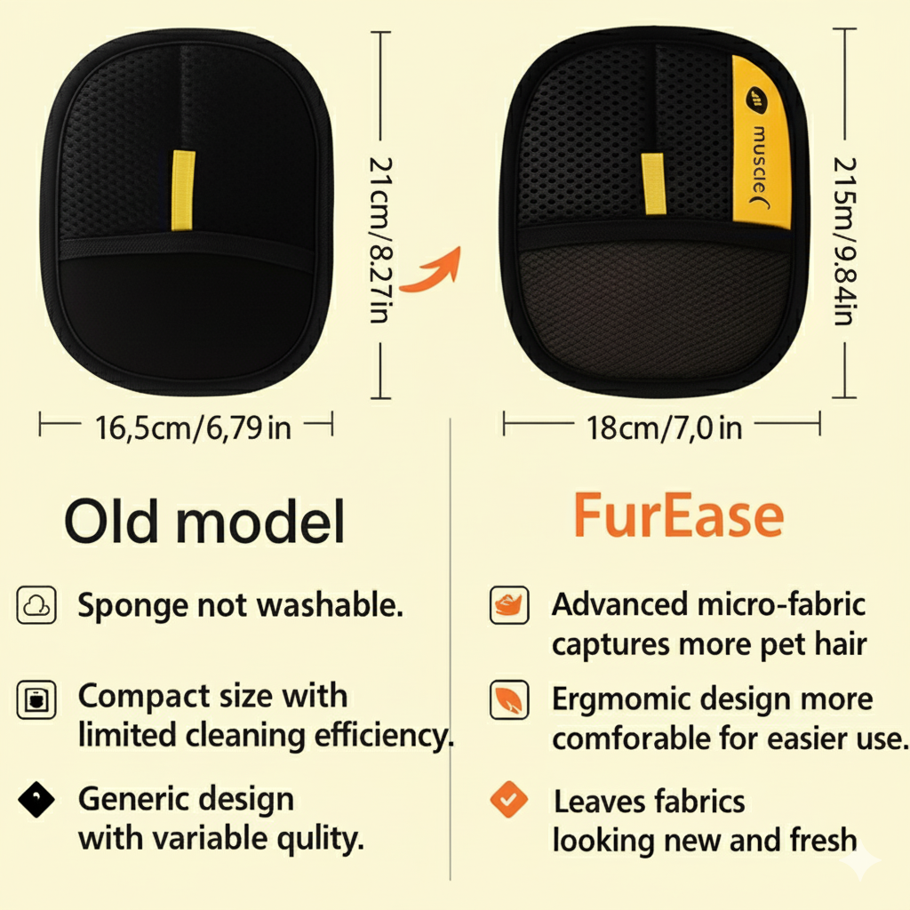 FurEase™ glides effortlessly over every surface, from soft fabrics and carpets to leather and car seats. It collects pet hair without leaving marks or residue, making cleaning simple and damage-free. No matter where the hair is hiding, FurEase™ handles it quickly and efficiently, keeping your home spotless.