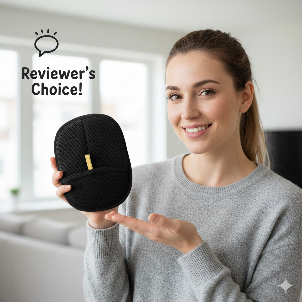 FurEase™ uses a specially designed friction surface to lift and trap pet hair from fabric, upholstery, and clothing — no sticky tape or batteries needed.